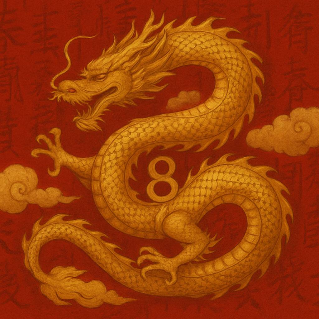 Дракон, один из самых почитаемых символов в Китае, усиливает значение чисел, особенно числа восемь. В китайской мифологии дракон – это могущественное существо, управляющее погодой, реками и судьбой. Он ассоциируется с удачей, силой и императорской властью. В древних текстах дракон часто связывался с числом восемь, так как оно символизировало гармонию и полноту, а дракон воплощал эти качества. Например, в фэншуй, искусстве гармонии пространства, изображения драконов используют для привлечения процветания, особенно если они размещены в «счастливых» местах, связанных с числом восемь, таких как восьмой сектор дома. Четвёрка, напротив, редко сочетается с драконом, так как её негативное значение противоречит его божественной природе. Происхождение образа дракона, вероятно, связано с наблюдениями за природой: змеевидные облака или реки, извивающиеся по долинам, могли вдохновить мифы о драконе как хранителе стихий.