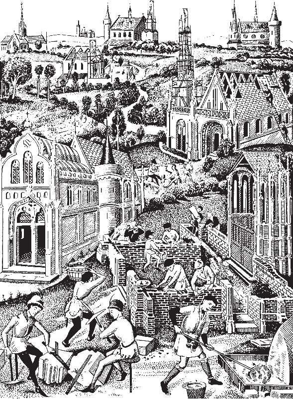 Рис. 8. Церковное строительство. С миниатюры 1460 г.