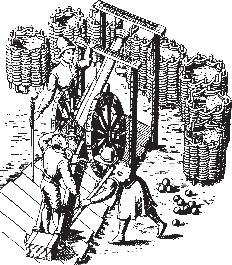 Рис. 10. Наводка осадного орудия. Агостино Рамелли, 1588 г.