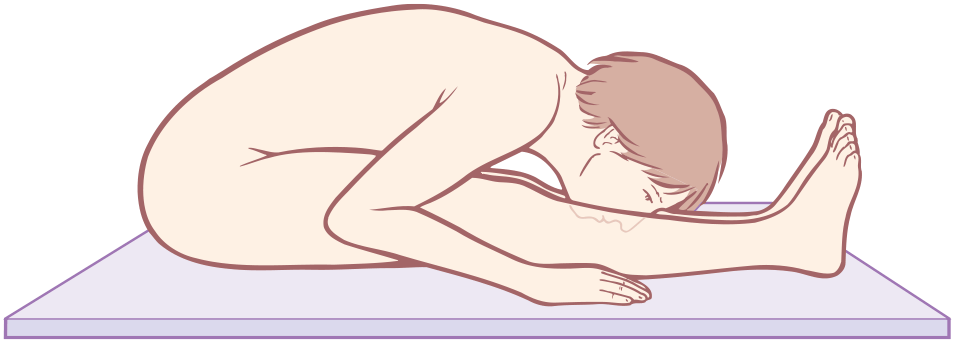 Рис. 4.6. Сокращаясь, ПФЛ разгибает пальцы стопы, создает тыльное сгибание голеностопного сустава, разгибает колени и сгибает тазобедренные суставы и туловище – то есть «складывает» тело в обычный наклон вперед. Исключением является разгибание верхнего отдела шеи, как это показано на данном рисунке