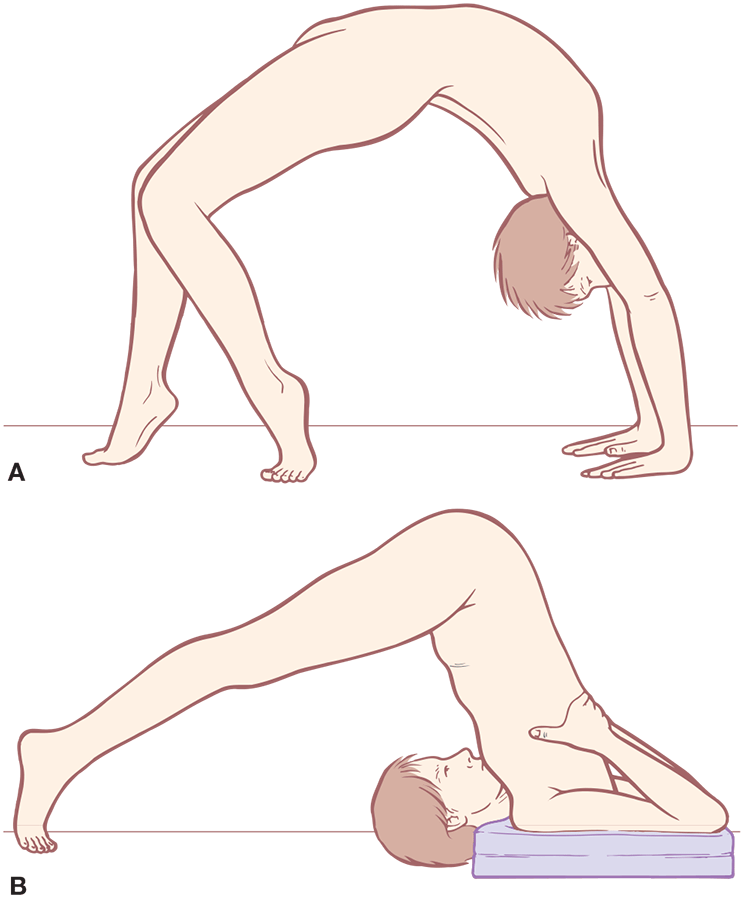 Рис. 4.7. В этих двух положениях тела можно наблюдать реципрокное взаимодействие между ПЗЛ и ПФЛ. На рисунке (А) ПЗЛ сокращена, а ПФЛ растянута; на рисунке (В) – наоборот