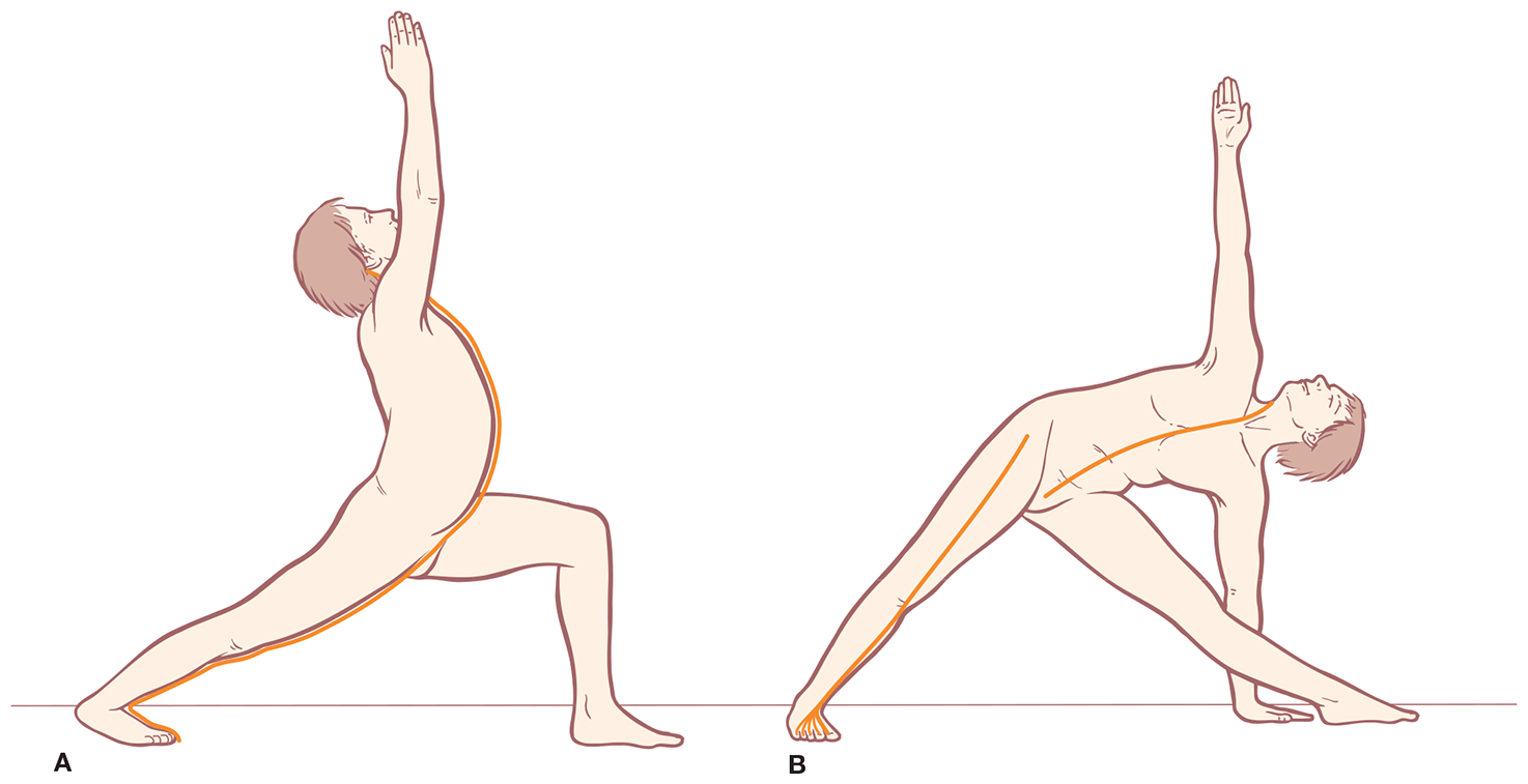 Таким образом, даже несмотря на отсутствие миофасциального соединения, существует механическое соединение через тазовую кость. Этот Анатомический поезд едет по одному-единственному «пути» при условии, что мы ограничиваем наше внимание движением в сагиттальной плоскости или ее «окрестностях». ПФЛ не работает как непрерывная линия в движениях, предполагающих сильную ротацию таза или туловища, но действует как непрерывность в поддержании осанки, в беге, а также в движениях и растяжках, выполняемых в сагиттальной плоскости (рис. 4.17).