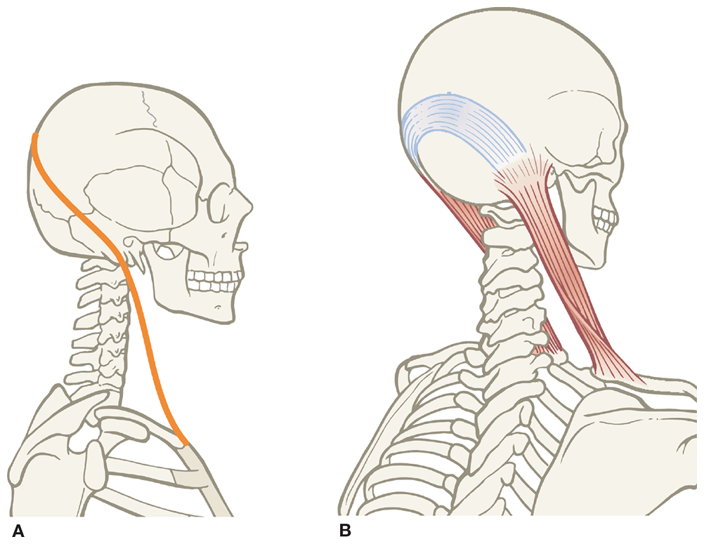 Механическое соединение грудной клетки с этими мышцами можно почувствовать, выполняя разгибание в шейном отделе позвоночника и поднимая подбородок вверх. Однако если вы будете более внимательны, то заметите, что большая часть этого натяжения передается вниз по внутренней стороне грудной клетки через Глубинную Фронтальную Линию, а не по поверхностным тканям ПФЛ.