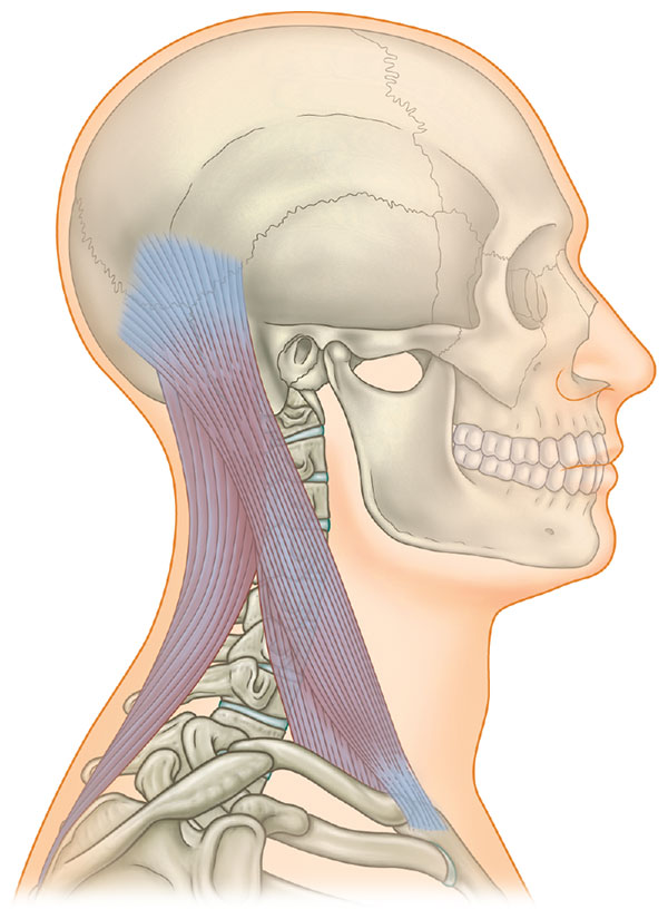 Аналогичная ситуация может произойти с передней порцией трапециевидной мышцы, которая крепится к наружному краю ключицы: она может включиться в работу вместо стабильной осевой грудинно-ключично-сосцевидной мышцы, снова вовлекая плечевой пояс в создание поддержки головы. Этот паттерн является примером дисфункции ЛЛ, которая пролегает под плечевым поясом и должна оставаться относительной независимой от него. При этом происходит нарушение динамического баланса «иксов» ЛЛ, при котором эту работу пытаются взять на себя мышца, поднимающая лопатку, и/или трапециевидная мышца (также см. обсуждение функции, которую выполняют мышца, поднимающая лопатку, и трапециевидная мышцы, являясь частью Линий Руки, в Гл.7).