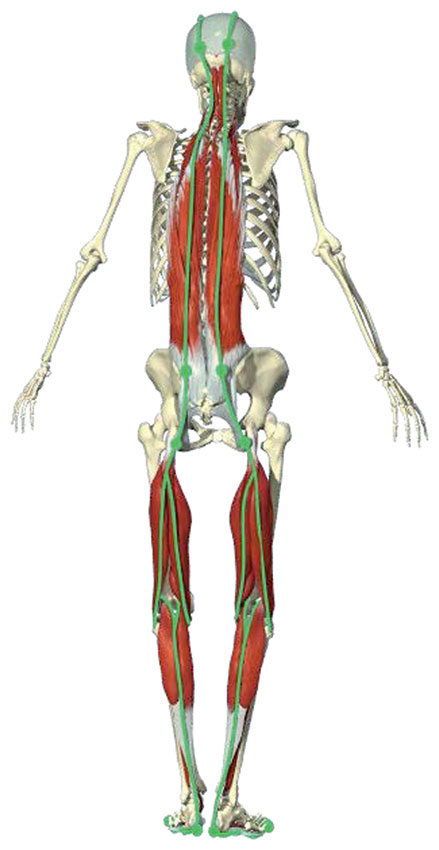 Рис. 1.22. Поверхностная Задняя Линия представлена в виде трехмерного объема – с включенными в нее мышцами и фасциями