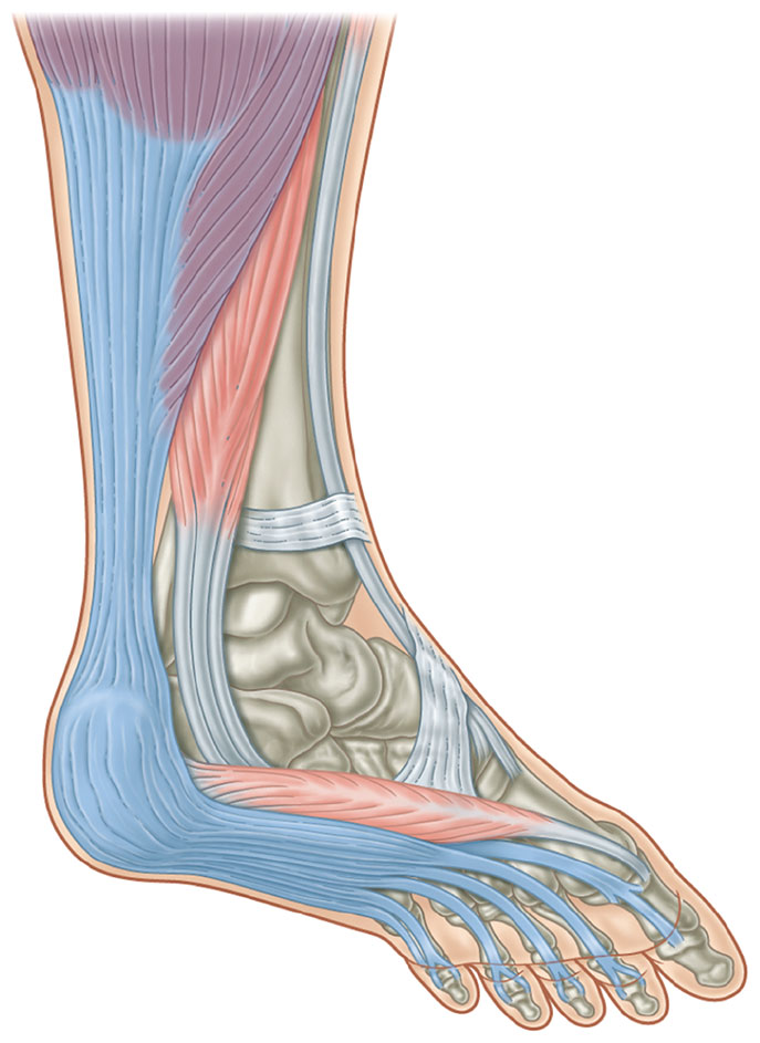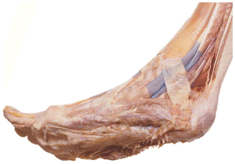 Рис. 3.12. Вокруг пятки, между подошвенной фасцией и ахилловым сухожилием и связанными с ним мышцами проходит плотная фасциальная непрерывность, которую можно иссечь