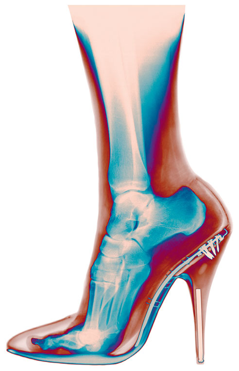 Рис. 3.14. Этот рентгеновский снимок стопы танцовщицы показывает, что роль пяточной кости во многом аналогична роли надколенника. Пяточная кость, расположенная на тыльной стороне лодыжки, повторяет функцию, которую выполняет надколенник, находящийся на передней части колена: она оттягивает мягкие ткани от точки опоры сустава, чтобы обеспечить больший рычаг при движении (воспроизведено с разрешения © Bryan Whitney)