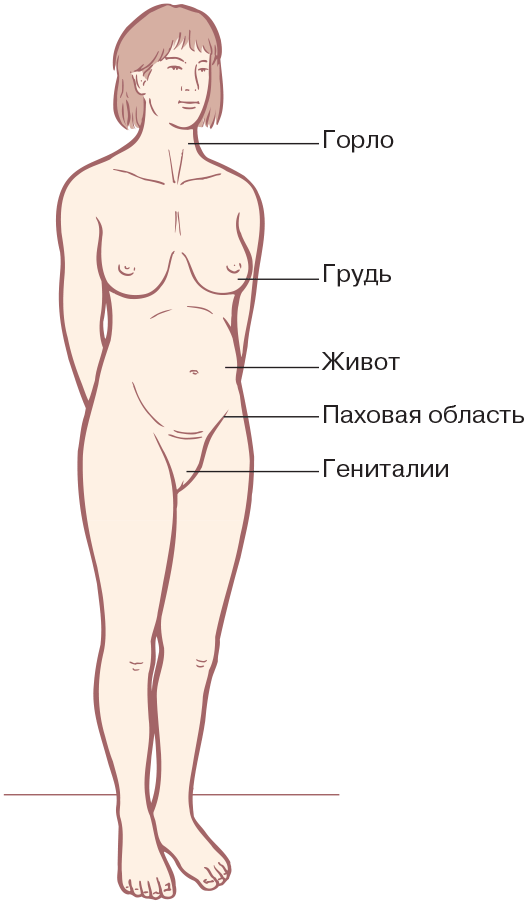 Рис. 4.3. Положение стоя на двух ногах, присущее человеку, привело к тому, что все наиболее чувствительные и уязвимые части тела обращены к миру и расположены вдоль ПФЛ. Сравните положение тела человека с положением тела четвероногих, у которых все слабые места защищены (см. рис. 4.31)