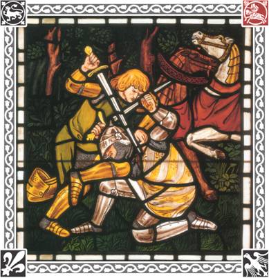 Бой Тристрама с сэром Мархальтом – автор Данте Габриэль Россетти (Dante Gabriel Rossetti), витраж