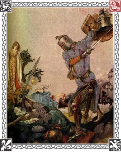 Сэр Тристрам побеждает Сэра Паламида – автор Артур Рэком (Arthur Rackham)