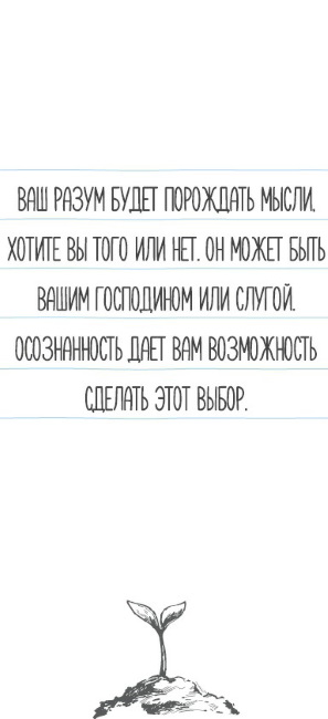 Будь то собеседование при приеме на работу, общение со сложным человеком, выздоровление или взмах клюшкой в гольфе, мы можем применить упомянутые истины, способные дать нам умиротворение и удовлетворение в каждый момент времени и повысить нашу продуктивность.