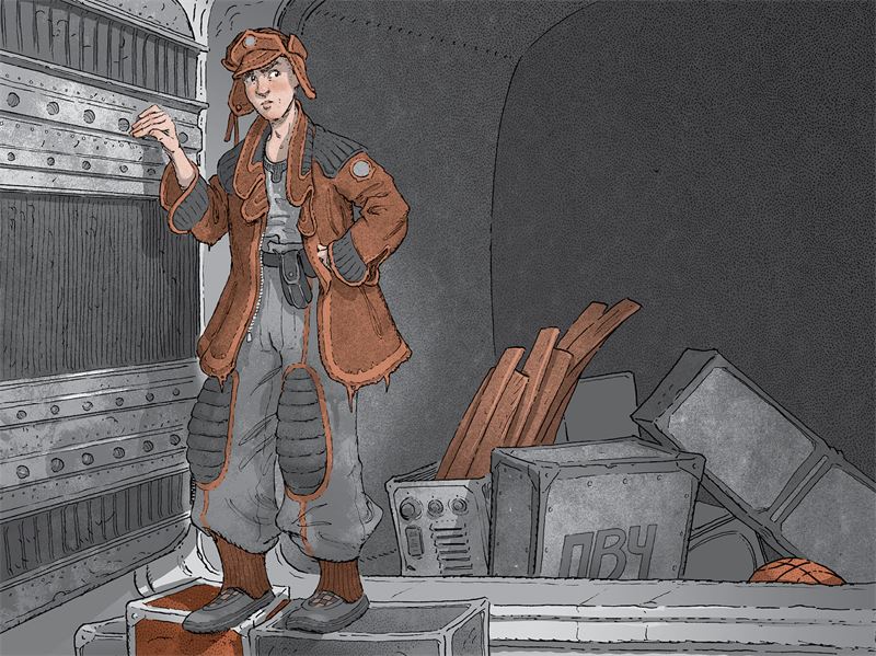 – «Я большой сильный-крепкий пилот!» – сказал он, имитируя голос Хейли. – «Ты-Карункул держись подальше от моего корабля, или я тебя вытурю!» – продолжал он, входя в трюм. – «О нет! Ужасные-плохие ножеджеки хотят съесть-сожрать меня! Спасай, Карункул! Спаси меня!» – Его низкий голос эхом гудел внутри судна.