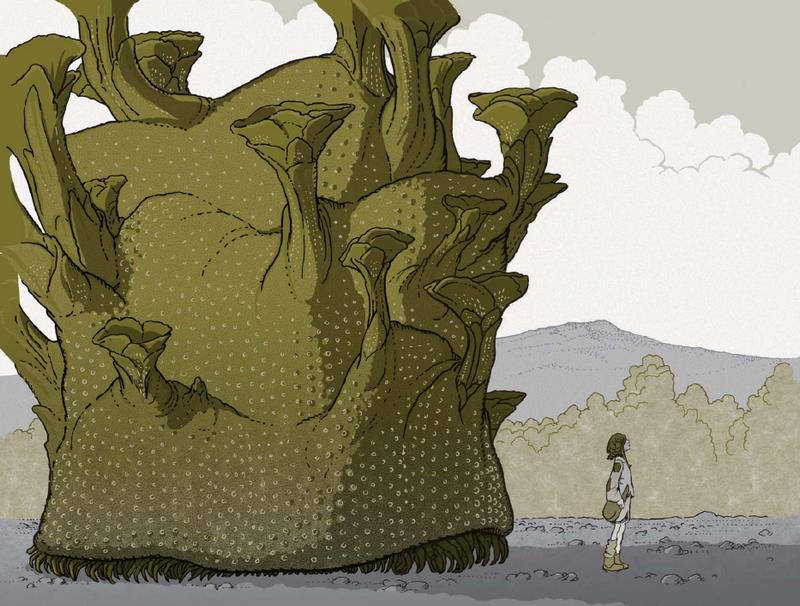 Сначала внимание Зии привлекли заросли причудливых растений впереди, потом она подняла глаза и увидела, что над незнакомым плакучим деревом с длинными висячими ветвями кружат несколько птиц. На самом верху, в кроне дерева, виднелась некая яркая штука – видимо, что-то вроде плода, заключила Зиа. Она снова запустила Идентисбор в попытках получить голограмму птиц и рассмотреть их лучше, но тут одна из них полетела к фрукту. Стремительно, как хлысты, все ветки дерева взметнулись вверх и сомкнулись над птицей, заглушив ее вопли.