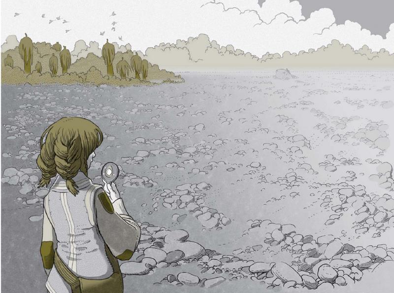 Зиа изучала зажатый в руке круглый гладкий камешек, почти ожидая, что он сейчас испарится в облачке световых частиц, – но он никуда не исчезал. Она все крутила и крутила его в руке. Начать с того, что полосатый буро-голубой камешек оказался тяжелым, гораздо тяжелее, чем Зиа предполагала, поднимая его с земли. Ничего подобного ей не приходилось держать в руках в голографической камере. Там все было легким – как фильтрованный воздух Убежища.