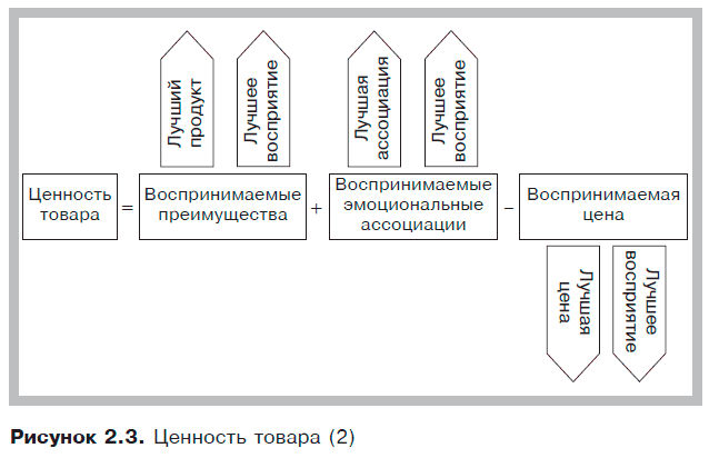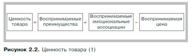 Бренды создают ценность, разрабатывая товары и услуги, обладающие характеристиками, которые необходимы потребителям, и положительными ассоциациями. Ценность можно определить как совокупность преимуществ продукта и эмоциональных ассоциаций при определенном уровне цены (см. рис. 2.2).