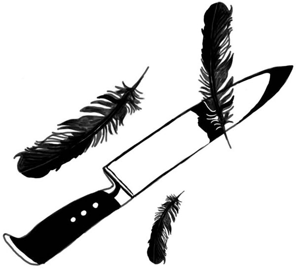 Рыська метался по комнате, не зная, что ему предпринять. Крылатки одна за другой падали с потолка и с оглушительным стуком, касаясь пола, возвращали себе прежний вид. Уже все до единой птицы валялись на нём острыми, холодными, закоптившимися ножами для разделки мяса.