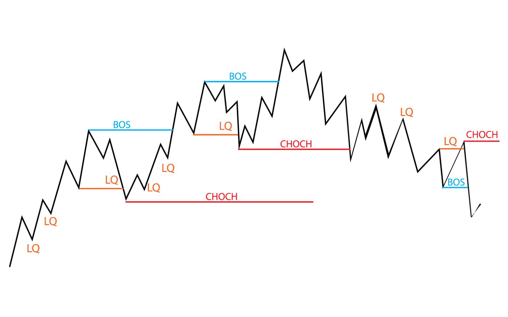 В концепции умных денег, термины BOS (Break of Structure) и CHoCH (Change of Character) играют важную роль в понимании динамики рынка и принятии торговых решений.