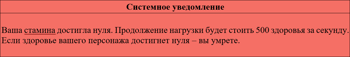 Помимо расхода здоровья, истощение стамины сильно понижало характеристики Джейсона, дополнительно ослабляя его. Он обнаружил, что его статы не могли уйти ниже нуля, но оставить его на уровне, сравнимом с уровнем малого ребенка, – могли.
