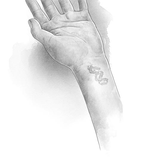 – Какое необычное родимое пятно. – Она повернула его ладонь, чтобы получше рассмотреть розовый рисунок в виде витой лестницы на внутренней стороне запястья. – Похоже на двойную спираль ДНК. Очень классно.