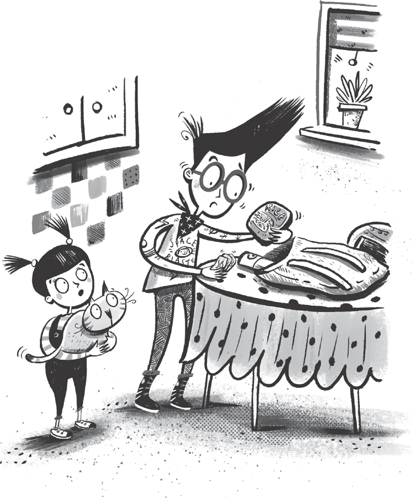 It was almost a clean escape. But then my little sister Lucy came into the kitchen just as I was putting the rice in my backpack. She was holding Butterbutt (who was looking especially evil).