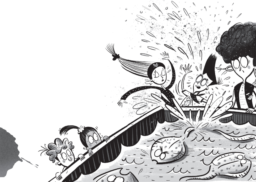 ‘Ohhhh!’ said Zoe and Bernard and everyone else. They all seemed way too excited about the fact that we were now trapped underwater, surrounded by POISONOUS JELLYFISH.