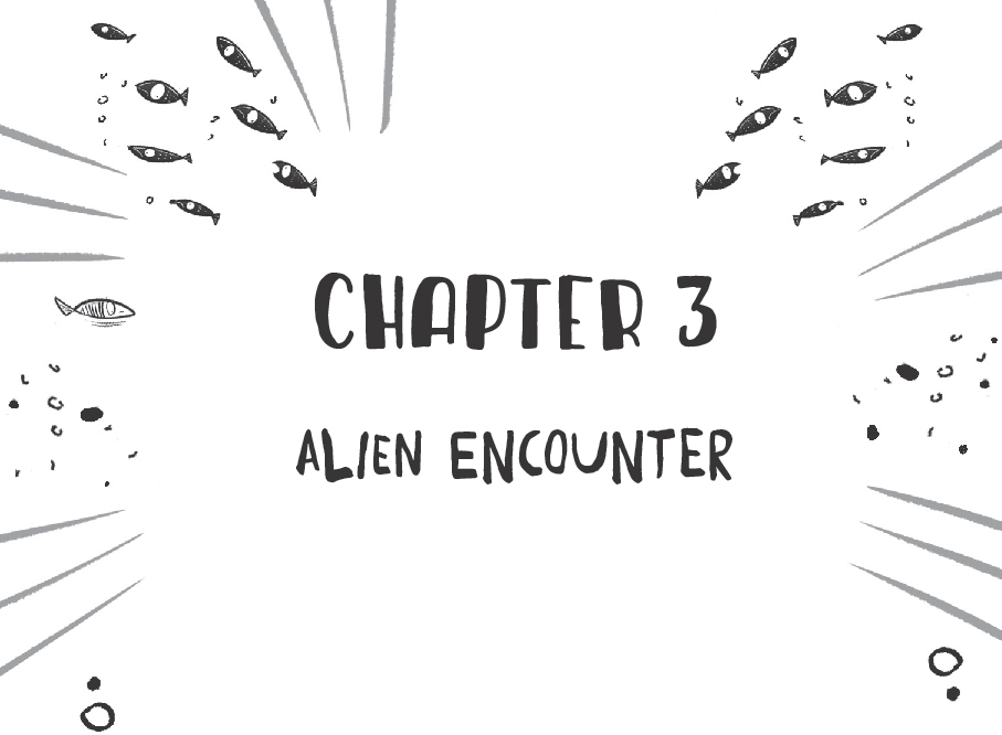 ‘That thing isn’t a fish,’ I spluttered, pointing at this HUGE PURPLE BLOB that was somehow floating above my head. I could hear Captain Jane (she’s the captain of TUBS, The Universe’s Best Spacecraft) in my head, telling me to take a deep breath and stay calm. ‘What IS that?’