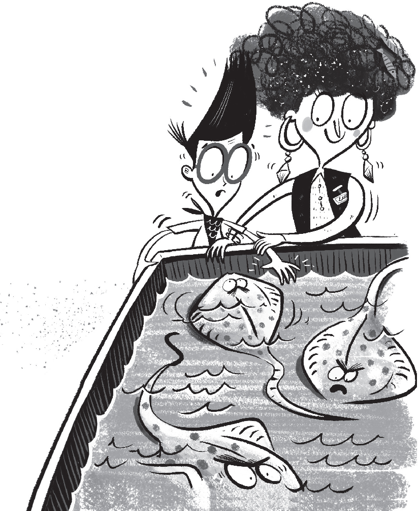 I stared at Aquarium Guide Betty. ‘Touch . . . a stingray?’ Didn’t Betty hear herself ? It says STING in the name! Who would want to touch a STINGray? That’s like asking, ‘Who wants to pet this SPIKY porcupine? Or this POISONOUS scorpion?’