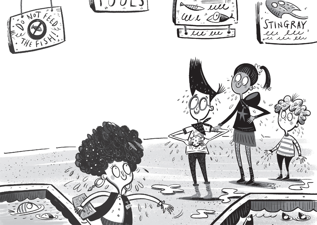 ‘Okay, everyone,’ said Betty the guide, leading us over to what looked like a pool of sea monsters, ‘it’s time for the petting tank! Everyone is going to get a turn to touch some of their favourite sea creatures. We’ve got starfish, sea slugs and stingrays! Who wants to go first?’