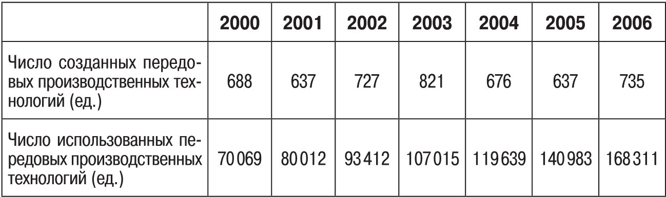 Создание и использование передовых производственных технологий в России, 2000–2006 гг.