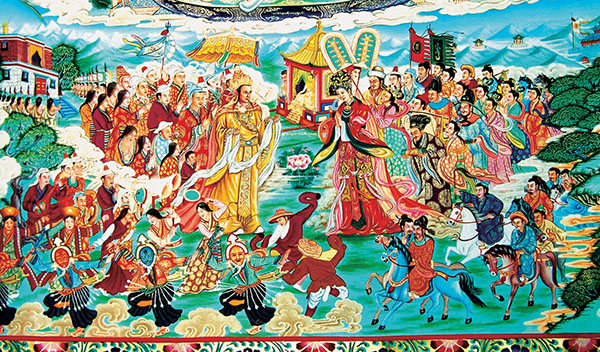 Свадебная церемония Сонгцена Гампо и принцессы Вэнъчэн (тханка)