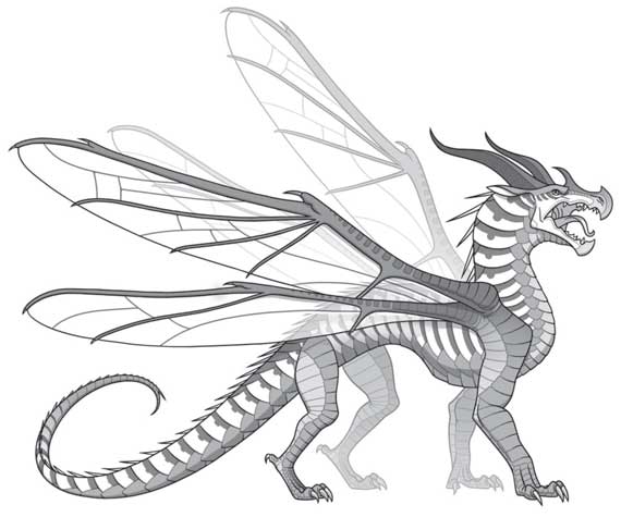Две пары крыльев, изящных и переливчатых, как у бабочки. Появляются у бескрылых драконят в шестилетнем возрасте вместе со способностью выделять шёлк. Чешуя любого цвета, за исключением чёрного.
