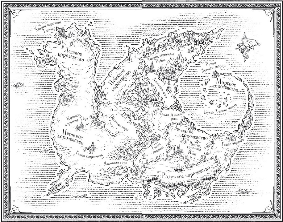 Рядом с троном стояла огромная золотистая дракониха, при виде которой душа у принцессы ушла в пятки. Принцесса Огонь, одна из трёх претенденток на Песчаное наследство, смотрела на союзников с отвращением и скукой. Все знали, что называть высокую гостью следует только «королевой Огонь», но Рубин трудно было так о ней думать. Огонь пока ещё не выиграла военный спор с сёстрами за трон покойной матери, да и королева тут уже присутствовала – та, чьи когти сжимали смертельной хваткой всё и вся в мире небесных.