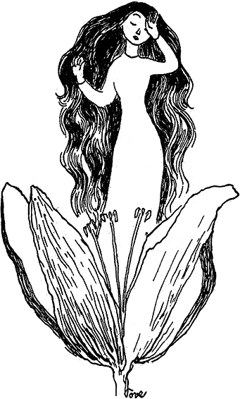 Но ничего не случилось. Тогда он осторожно выглянул из-под лап. Произошло нечто невероятное. Их тюльпан снова засветился, распахнул лепестки, и внутри оказалась девочка с синими-пресиними волосами, которые доходили ей до колен.
