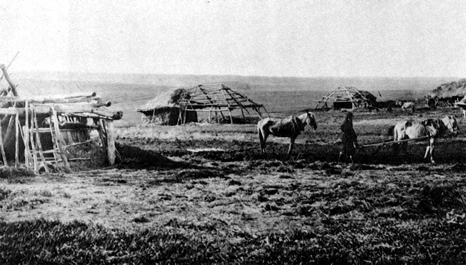 Крестьянский двор в голодающей Нижегородской крестьянской губернии. Документальная фотография. Осень 1891 года.