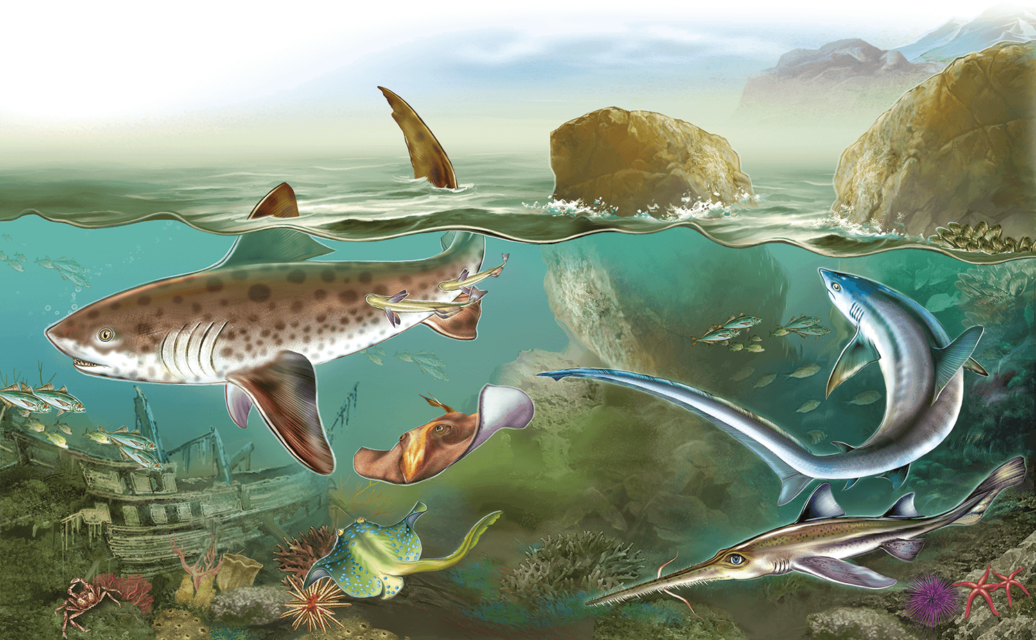 Предки современных акул и скатов появились в девоне. Так называется один из периодов палеозойской эры в истории Земли. По разным расчетам, первые хрящевые рыбы существовали 350–320 миллионов лет назад, примерно на 100 миллионов лет раньше, чем первые динозавры. Из современных позвоночных животных только двоякодышащие и кистеперые рыбы могут состязаться с хрящевыми по древности происхождения. Но и тех и других осталось совсем немного – считаные единицы видов, – тогда как акулы и скаты до сих пор составляют процветающую разнообразную группу. Известно около 600 видов ныне живущих хрящевых рыб.