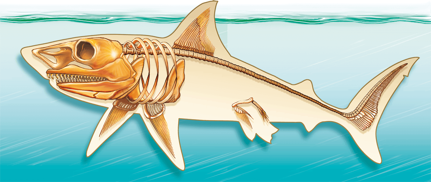 Скорее всего, вы много раз в жизни ели рыбу. Не правда ли, досадно, что в нежном мясе щуки, карпа, окуня, трески и селедки так много тонких и острых костей? Так вот, если вам когда-нибудь доведется попробовать акулу, то с этой неприятностью вы не столкнетесь. Костей в акульем мясе нет вообще. Акулы, так же как и их родственники – скаты, относятся к хрящевым рыбам. Скелет у них есть, но он состоит исключительно из хрящей. У новорожденных акулок и скатиков они абсолютно эластичны. У взрослых рыб хрящи пропитываются солями кальция и частично отвердевают. Но настоящих костей, как в скелетах других рыб, а также всех амфибий, рептилий, птиц и млекопитающих, у акул и скатов нет. Почему? Да потому что хрящевые рыбы гораздо древнее «костистых» животных, их эволюция шла своим независимым путем и не привела к образованию костей.