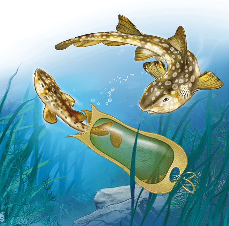 Большинству обычных рыб не нужно спариваться, чтобы произвести на свет потомство. У осетров, лососей, щук, окуней, карпов и многих других самка выметывает икринки, а самец – семенную жидкость. В воде они соединяются, и через некоторое время из оплодотворенных икринок вылупляются личинки. У акул и скатов все не так. Брюшные плавники самцов преобразованы в специальный орган размножения, который при спаривании помогает вводить семенную жидкость в полость тела самки. Оплодотворение всегда происходит не снаружи, а внутри хрящевой рыбы.