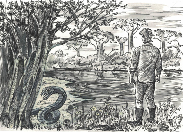 – «Откуда такая рептилия?!» – вскочил он, раскрыв от удивления глаза. В его представлениях о животном мире её можно было сравнить разве что с огромной анакондой.