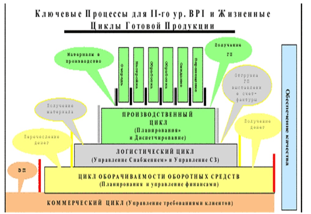 Переход с I–го на II-й уровень BPI предполагает использование ключевых процессов, которые при совместном выполнении приводят к достижению целей внедрения новой бизнес – модели предприятия на базе методики MRPII и технологий ERP-системы.