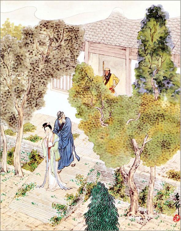 Она, паря, по воздуху плыла,Прекрасный стан был тоньше, чем игла;Перебираясь через тростникиИль ползая по травке у реки,Искала тень, что может дать цветок;Все стрекотал веселый голосок.Ее полет был как полет комет,Из глаз ее всегда струился свет,Средь насекомых – меньше всех она,Но хитростью и ловкостью сильна,В свободный час она стремилась в лес,Чтоб самый след в густой траве исчез,И даже сотни тысяч зорких глазНайти бы не смогли ее сейчас.С жужжаньем Сунь У-кун полетел вперед, очень скоро нагнал Чжу Ба-цзе и примостился у него за ухом. Пройдя примерно ли восемь, Чжу Ба-цзе, ничего не подозревая, отбросил свои грабли и, обернувшись в сторону Танского монаха, начал, ожесточенно жестикулируя, ругать его.