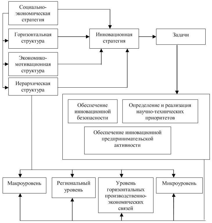 Можно дать и другое определение стратегии. Экономическая (социально-экономическая) стратегия – это система долгосрочных, определяемых целью развития концептуальных установок (ориентиров) на принятие решений, позволяющих распределять ресурсы между альтернативными траекториями развития и корректировать их распределение при изменении внешних и внутренних условий функционирования. Стратегия развития инновационной сферы как часть общей социально-экономической стратегии может быть определена как инновационная стратегия (В.М. Аньшин, А.А. Дагаев).