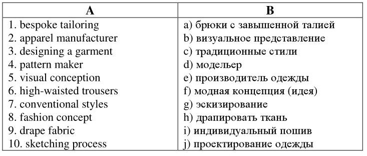 (From http://en.wikipedia.org)5. Закончите предложения, используя следующие слова: fashion, haute couture, mass market, season, garment.