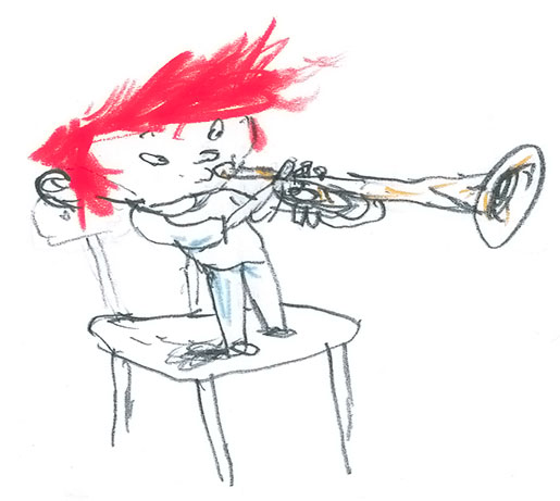 Маленький рыжий мальчик с большими веснушками и широкой улыбкой взобрался на стул и показался из-за пюпитра. Собственно говоря, он был не просто маленький, а очень маленький. И волосы у него были не просто рыжие, а ослепительно-рыжие. И улыбка не просто широкая, а такая широченная, что делила его маленькое лицо на две половины. И веснушки не просто большие, а… ну ладно, ладно, просто большие.