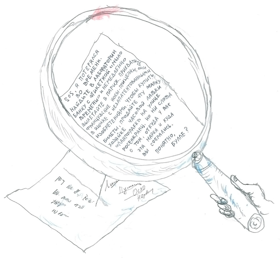 – «Читайте там» и стрелка в сторону марки, – продолжил он. – Значит, под маркой тоже скрыто какое-то сообщение! Надо ее отклеить.
