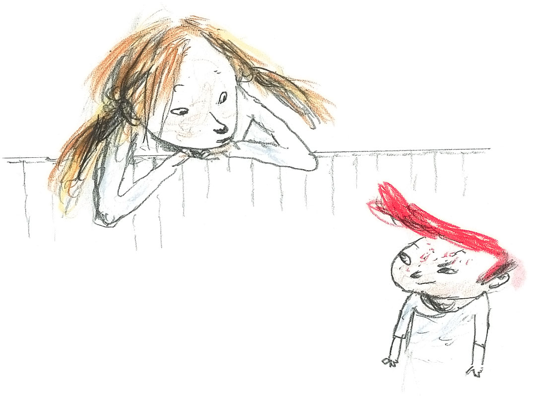 Лисе поднялась на цыпочки и заглянула через забор. Там внизу стоял маленький мальчик с ярко-рыжими волосами. Не просто рыжими, а очень рыжими. И не просто маленький, а очень маленький. Личико было маленьким, с двумя крохотными глазками и торчащим между ними маленьким носиком. Большими на лице были только веснушки.