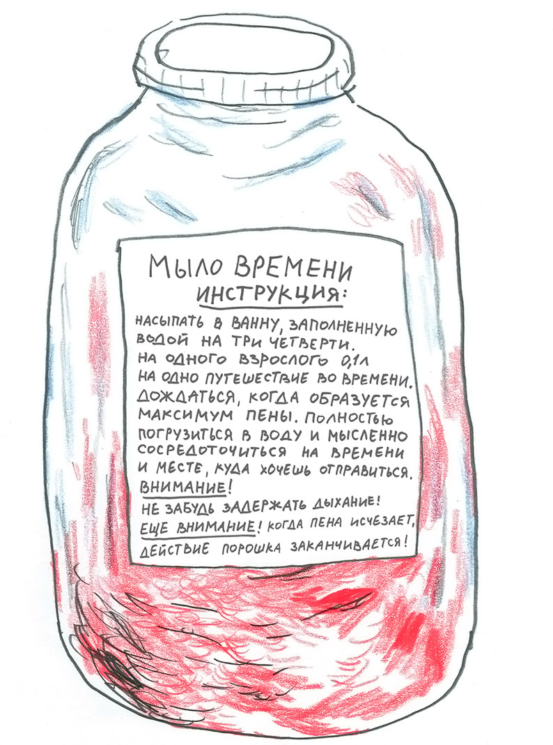 Лисе посмотрела на банку. От лунного света землянично-красный порошок в ней мерцал красиво и загадочно. Потерялся во времени? Мыло времени? Ванна – машина времени? Просто бред какой-то.