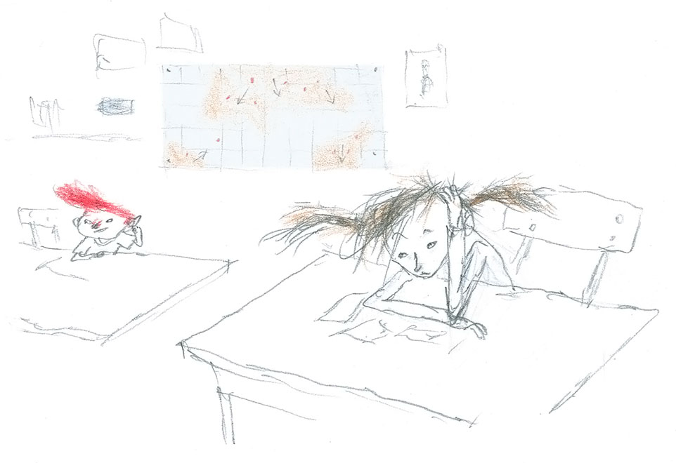 Взгляд фру Стробе скользнул поверх ее невероятно длинного носа, прошел сквозь невероятно толстые стекла очков, сидящих на самом кончике носа, упал на детей, сидящих в классе перед ней, и вонзился в самого маленького из них.