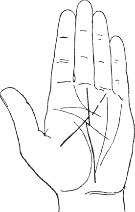 Брак по любви обозначается крестом ниже пальца Юпитера (рис. 16, 4). Если крест не хорошо обрисован, то это значит, что этот брак не состоялся. Если крест внизу имеет поперечную линию, то будут большие препятствия к браку.