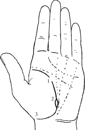 Рис. 7. Линия Венеры, или линия жизни, и линия Марса, или головы