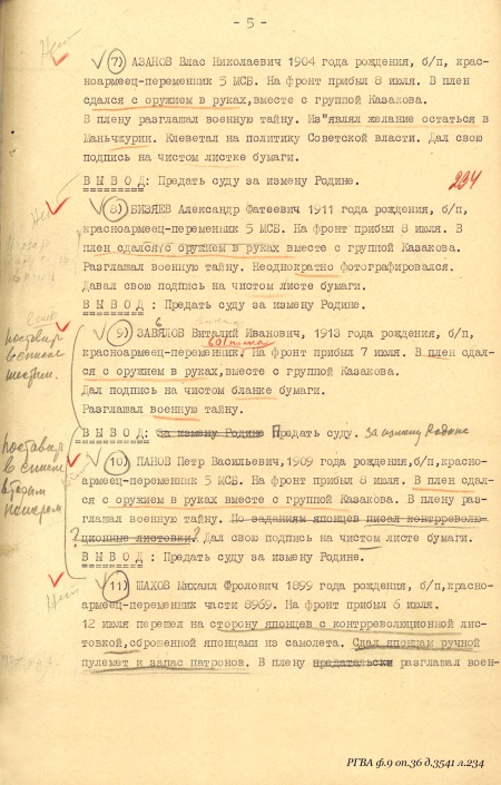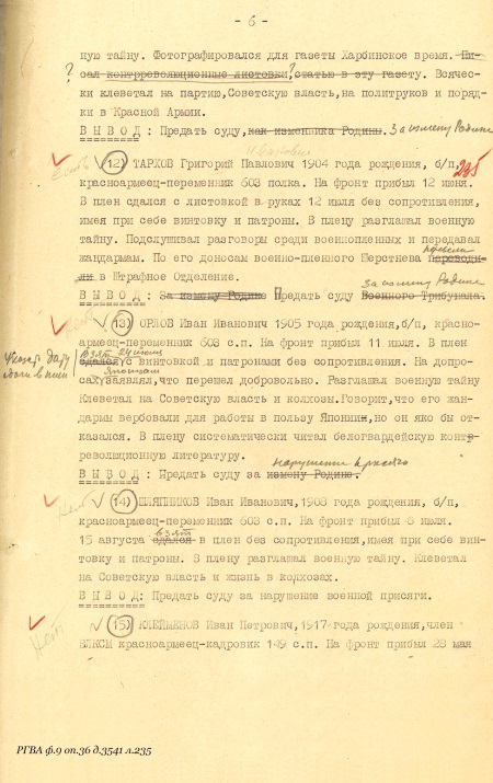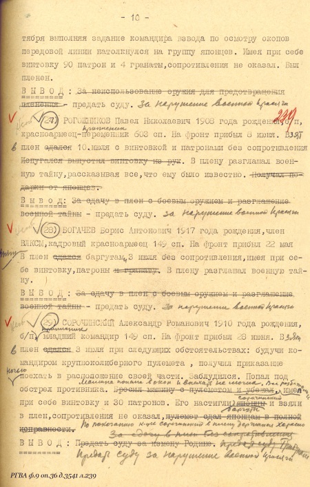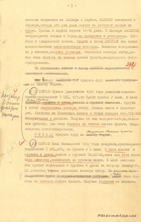 Следствие, однако, пришло к заключению, что «…БУРНЯШЕВ Александр Данилович, 1918 года рождения, член ВЛКСМ, красноармеец-кадровик 8 МББ. Прибыл на фронт 5 июля. В плен сдался с винтовкой в руках 6 июля. В плену фотографировался у подбитого танка с Герасимовым, инсценируя сдачу в плен. Разглашал военную тайну. Писал контрреволюционные листовки по заданию японцев. Высказывал желание остаться у японцев. Вывод: Судить за измену Родине…». Политотдел Фронтовой Группы, изучив отчет и материалы следствия, с особистами в целом согласился: «…Бурняшев Александр Данилович, 1918 года рождения, член ВЛКСМ, кадровый красноармеец 8 МББ. Прибыл на фронт 5 июня. Взят в плен 6 июля. В плену фотографировался у подбитого танка с белым флагом, инсценируя сдачу в плен. Высказывал желание остаться у японцев. Вывод: предать суду за нарушение военной присяги…».